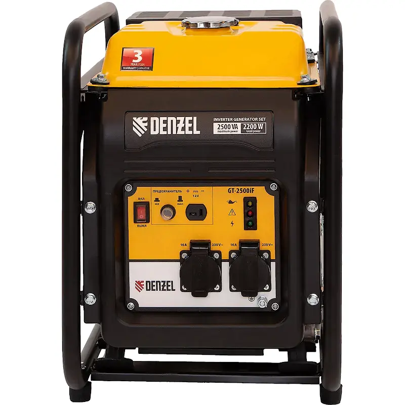 Инверторный бензиновый генератор DENZEL GT-2500iF с максимальной мощностью 2,5 кВт станет незаменимым помощником в домашней мастерской, гараже, на загородном участке, а также на небольшой строительной или торговой площадке. Модель обладает системой защиты, надежным мощным двигателем и низким расходом топлива.