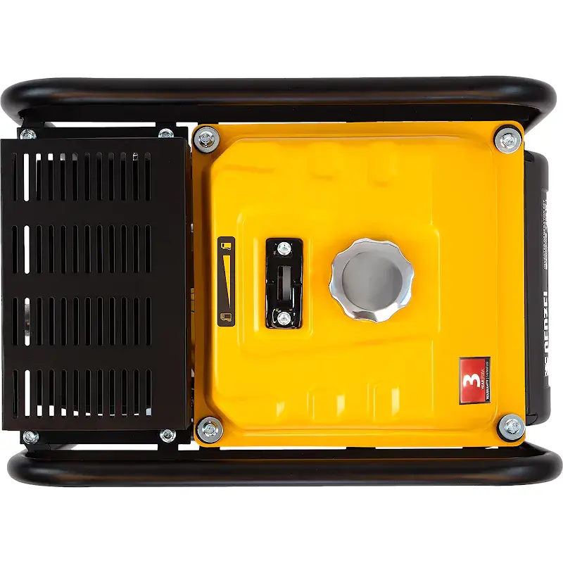 Генератор открытого типа обеспечивает быстрый доступ к основным внутренним узлам. В качестве защиты выступает рама из стальной трубы. Она не только оберегает конструкцию от механических повреждений, но и служит одновременно устойчивой опорой, а также транспортировочными ручками.