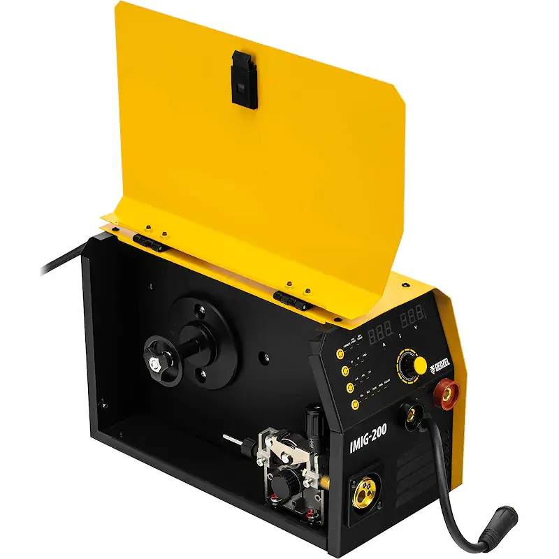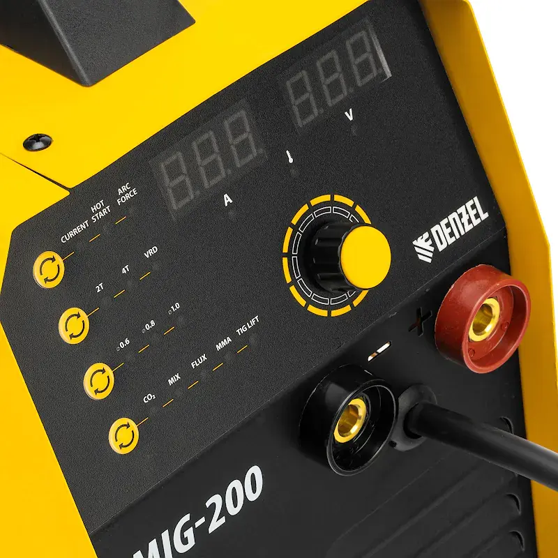 Инверторный аппарат полуавтоматической сварки Denzel IMIG-200 способен работать с максимальным сварочным током 200 A и совместим с катушками массой до 5 кг, продолжительность включения составляет 60%. Подходит для сварки изделий из конструкционных сталей. Аппарат разработан с использованием передовой инверторной технологии IGBT, что обеспечивает стабильный сварочный ток на выходе и высокий КПД. Синергетическое управление упрощает работу, позволяя подбирать наиболее подходящие параметры в зависимости от конкретной задачи: аппарат предлагает оптимальные значения напряжения, скорости подачи проволоки и т. д.