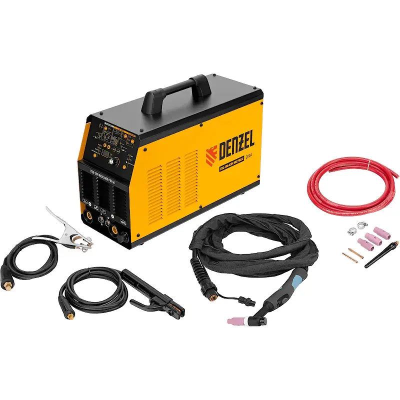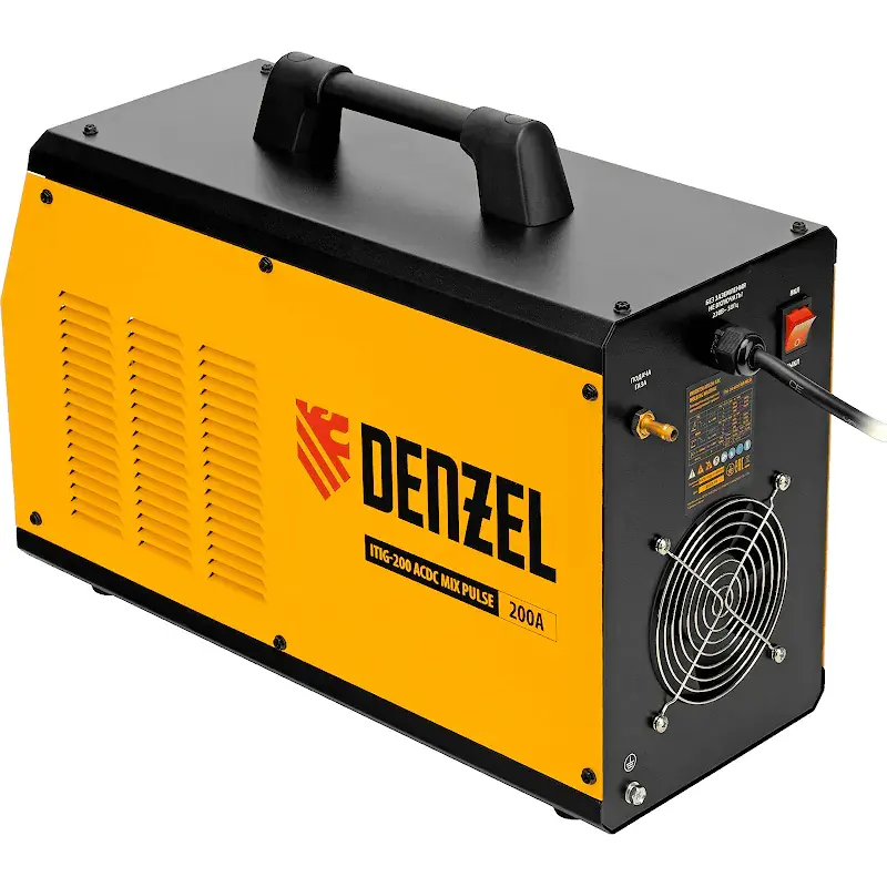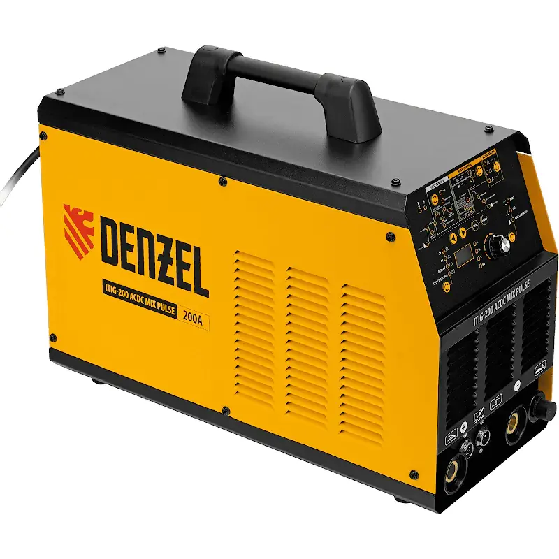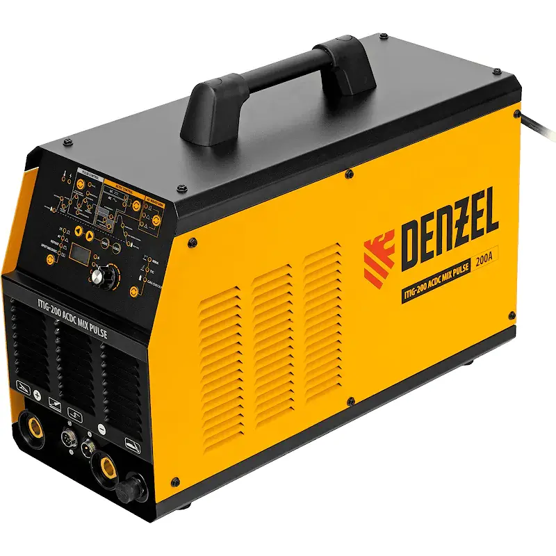 Инверторный аппарат аргонодуговой сварки Denzel ITIG-200 ACDC Mix Pulse работает с максимальным сварочным током 200 А, продолжительность включения составляет 60%. Позволяет работать с использованием как переменного, так и постоянного тока, поэтому подходит для сварки не только сплавов из стали, но и цветных металлов, таких как медь, титан, а также алюминия и его сплавов. Используется для аргонодуговой сварки неплавящимся электродом (TIG) и MMA-сварки покрытым электродом диаметром 4-5 мм.