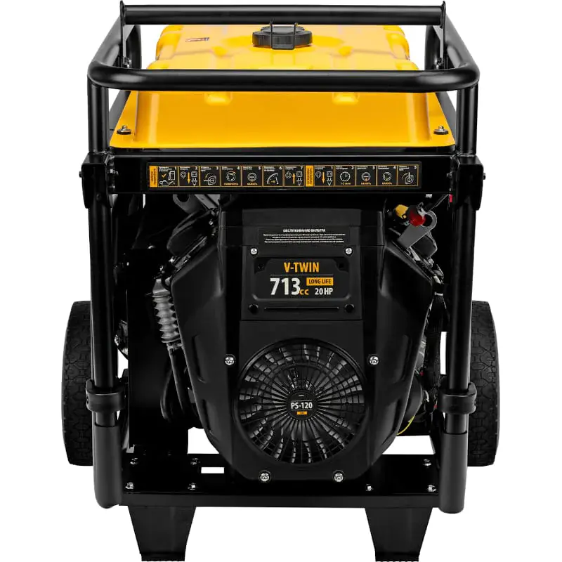 • Мобильность — колеса и ручки упрощают перемещение генератора по рабочей площадке.