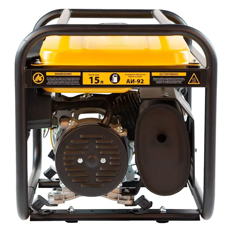 Управлять бензиновым электрогенератором просто. Все рабочие элементы управления подписаны и имеют соответствующие обозначения. Перемещать модель по рабочей зоне можно за раму, которая образует ручки по боковым сторонам.