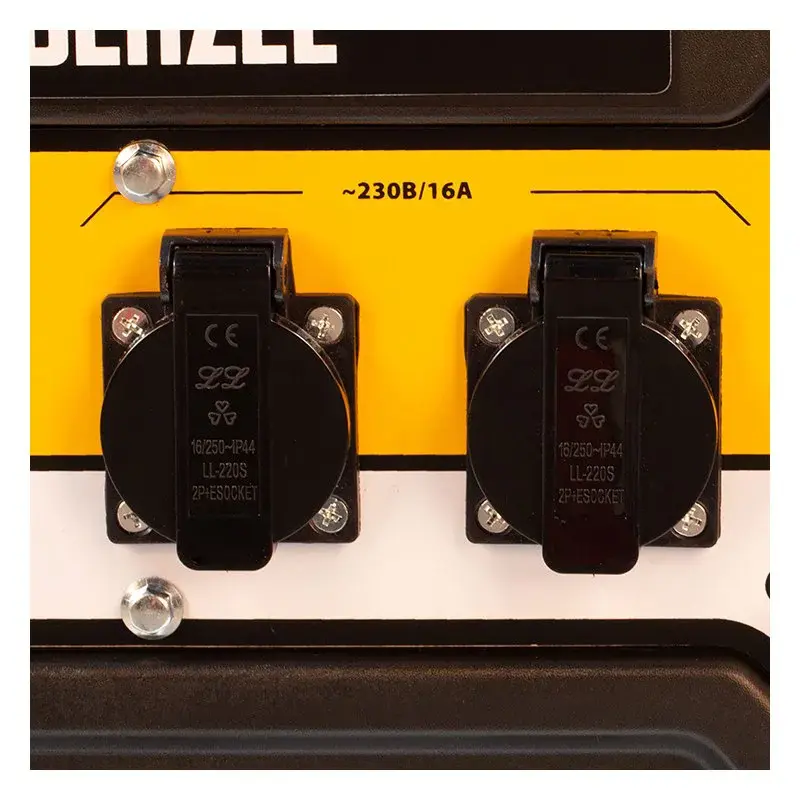 Оборудование подключается к генератору при помощи двух розеток на 230 В, расположенных на панели управления. Модель способна питать инструменты суммарной мощностью до 2 кВт. Здесь также расположен вольтметр, который позволит отслеживать текущее рабочее напряжение.