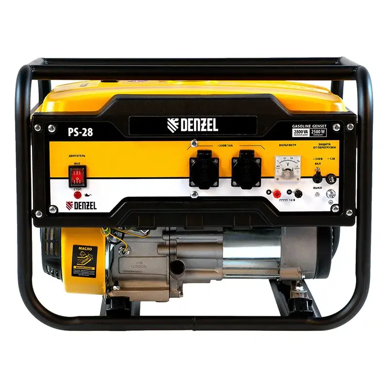 Бензиновый генератор Denzel PS-28 подходит для использования в качестве резервного источника питания для одного или нескольких инструментов суммарной мощностью 2,5 кВт. Модель обладает малым весом, а потому её удобно брать с собой на рыбалку, пикник, на дачу, стройку, в торговую точку и т.д.