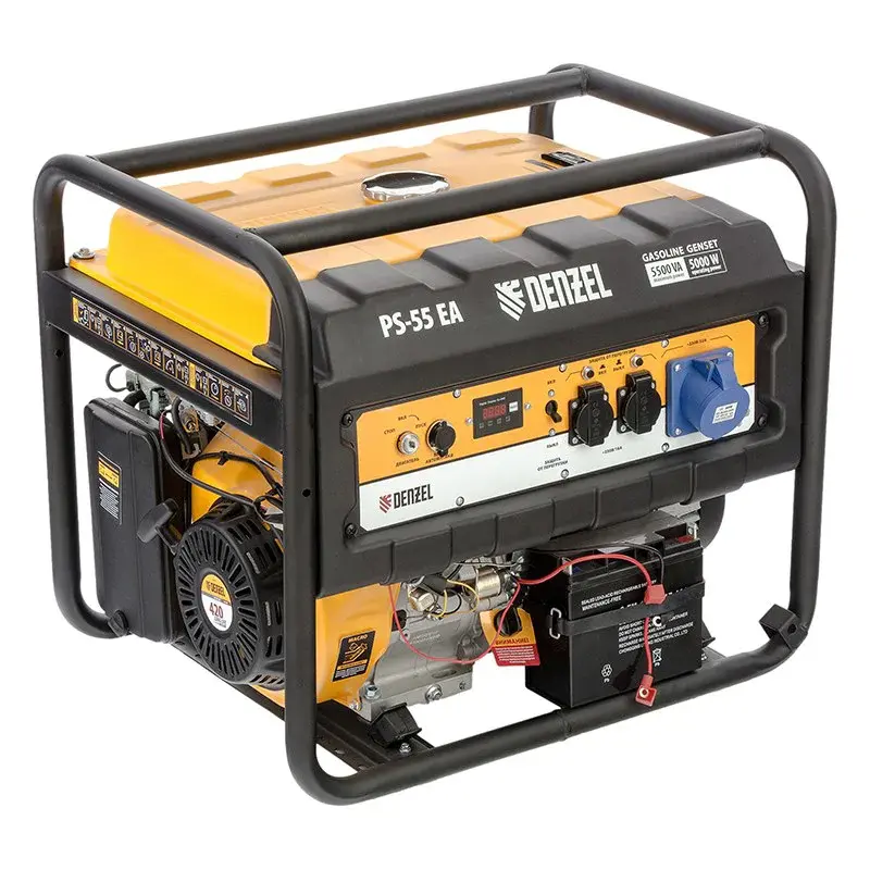Бензиновый генератор DENZEL PS-55EA оборудован 4-тактным двигателем мощностью 15 л.с. Электростартер позволит запустить модель простым поворотом ключа, а цифровой дисплей даст возможность отслеживать основные параметры работы.