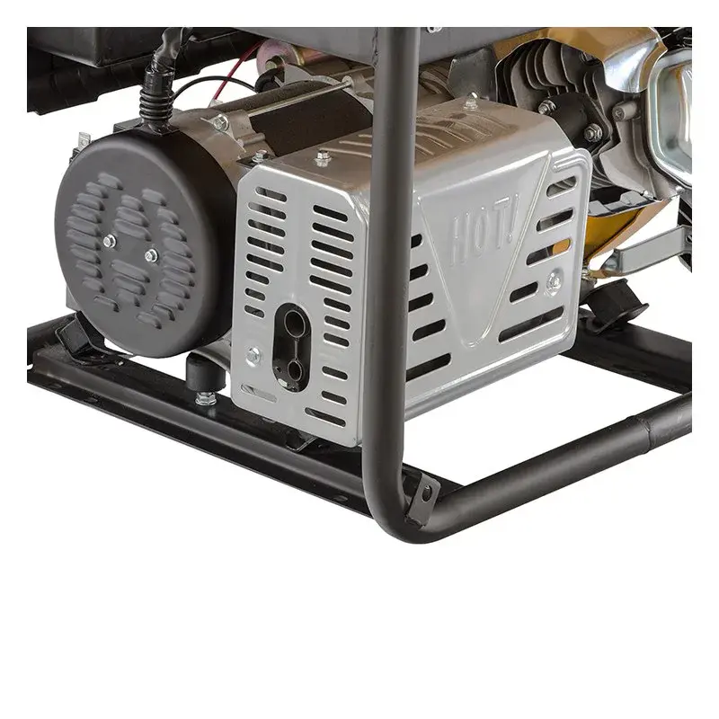 Бензиновый генератор используется для питания одного или нескольких потребителей сразу, чья суммарная мощность не превышает 5 кВт. На корпусе расположено 3 розетки на 230 В. Две на 16 А и одна силовая на 32 А.