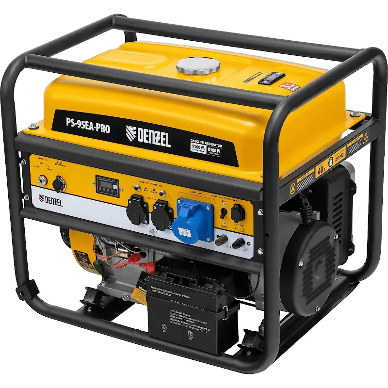 Бензиновый генератор Denzel PS-95EA-PRO максимальной мощностью 9,5 кВт, с баком объемом 40 л, разъемом ATS и электрическим стартером, поддерживает напряжение в сети 230 В и способен выдавать 8,5 кВт номинальной мощности благодаря двигателю увеличенного объема 485 см3. Предназначен для обеспечения энергией электроинструмента, бытовой и садовой техники, незаменим в загородном доме и на строительной площадке.