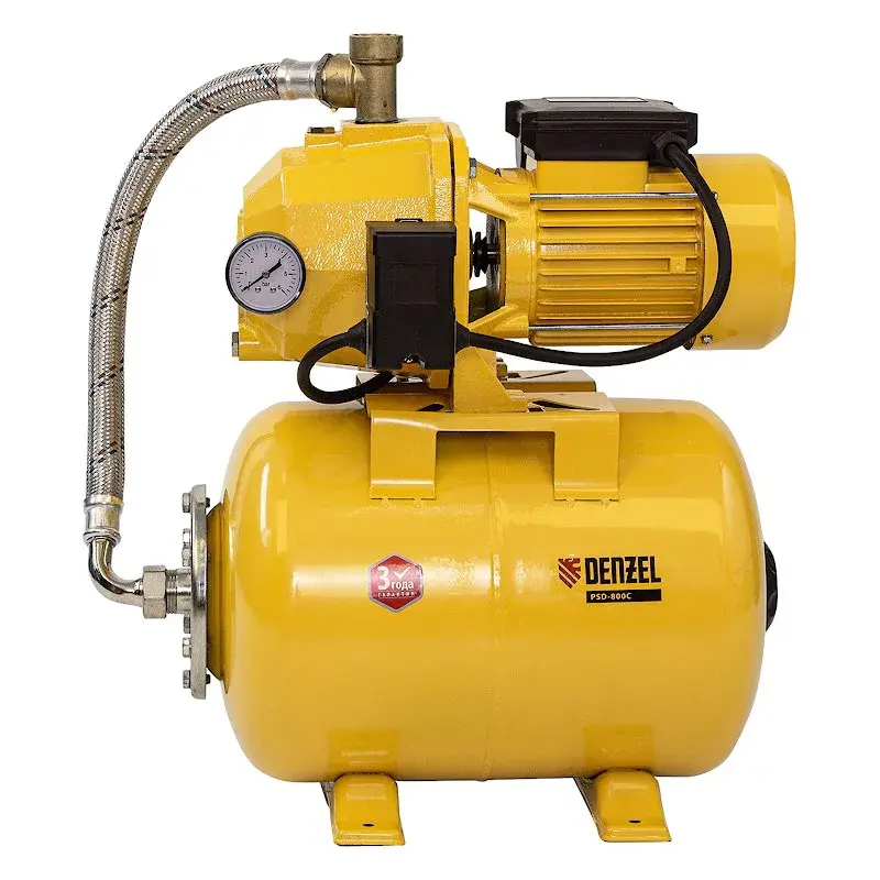 Насосная станция Denzel PSD800C оснащена системой защиты от перегрева, которая отключает двигатель при достижении критической температуры. После охлаждения устройство автоматически включается. Сменная мембрана накопительного бака изготовлена из пищевой резины, поэтому оборудование можно использовать для подачи питьевой воды. Крыльчатка выполнена из многокомпонентного пластика, устойчивого к перепадам температур. Ножки имеют отверстия под болты для крепления конструкции к полу.