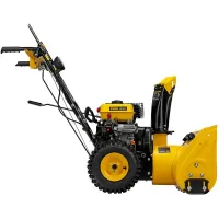 Модель оборудована стальным шнеком с острыми зубьями. За счет этого техника справляется с измельчением плотных комков слежавшегося или даже заледеневшего снега.