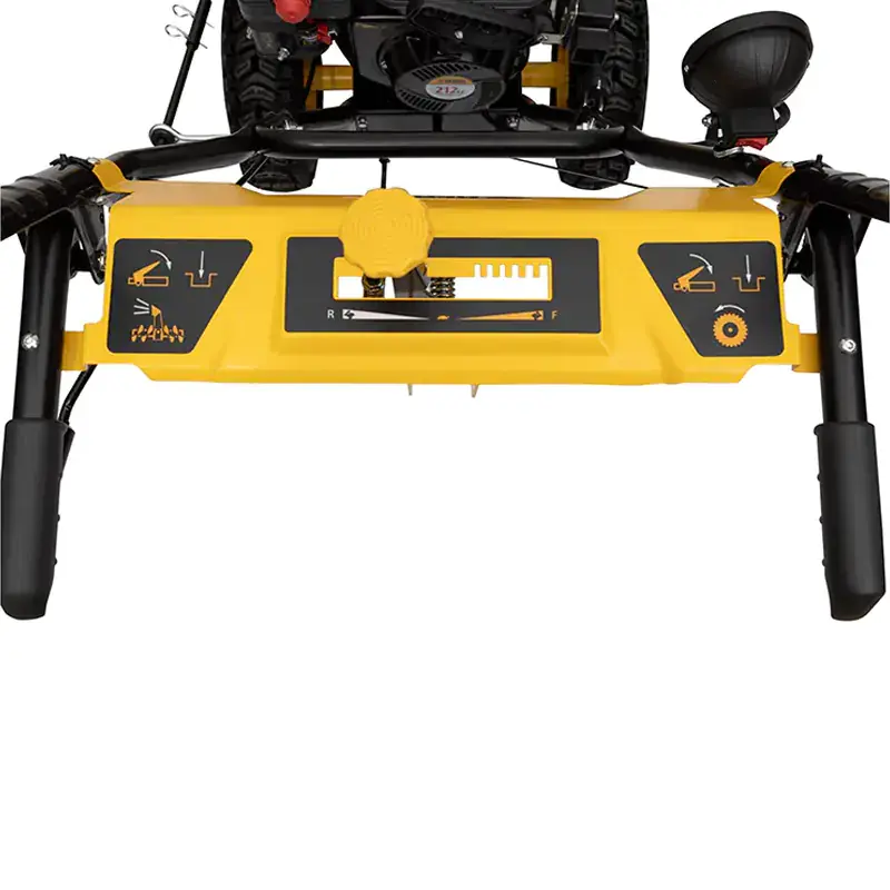 На выбор есть несколько скоростей передвижения: 5 передних и 2 задние. Начинать работу следует с самой медленной. Скорость необходимо прибавлять постепенно, с учетом ровности участка, высоты и плотности снега, а также ваших предпочтений. Задний ход позволит разворачивать модель в узких местах, а также облегчит парковку.