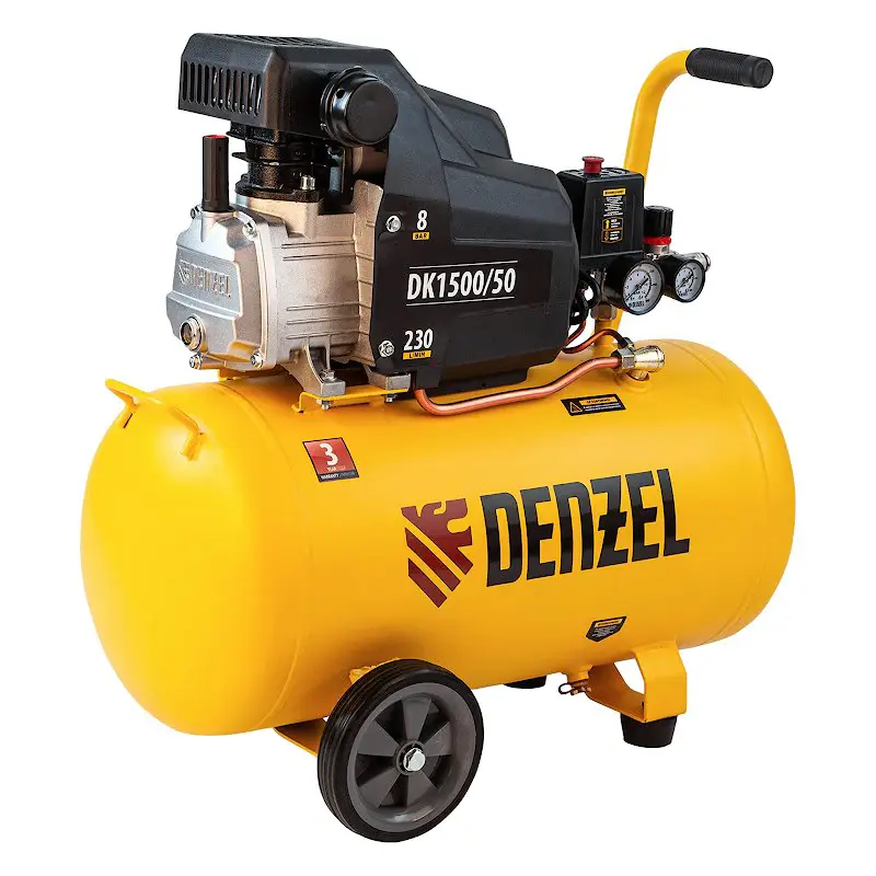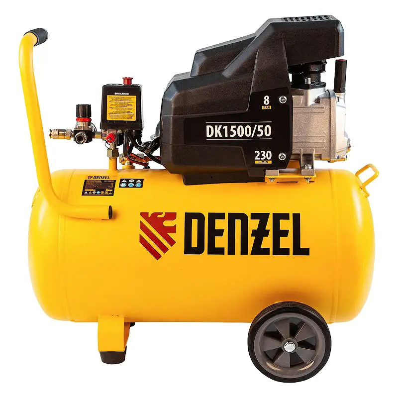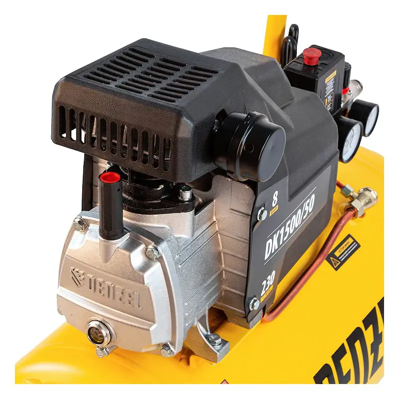 Воздушный компрессор Denzel Х-PRO DK1500/50 обладает высокой производительностью 230 л/мин и отлично подходит для питания пневматических дрелей, шлифовальных машин, краскопультов, ножниц и продувочных пистолетов. Объем ресивера составляет 50 л.