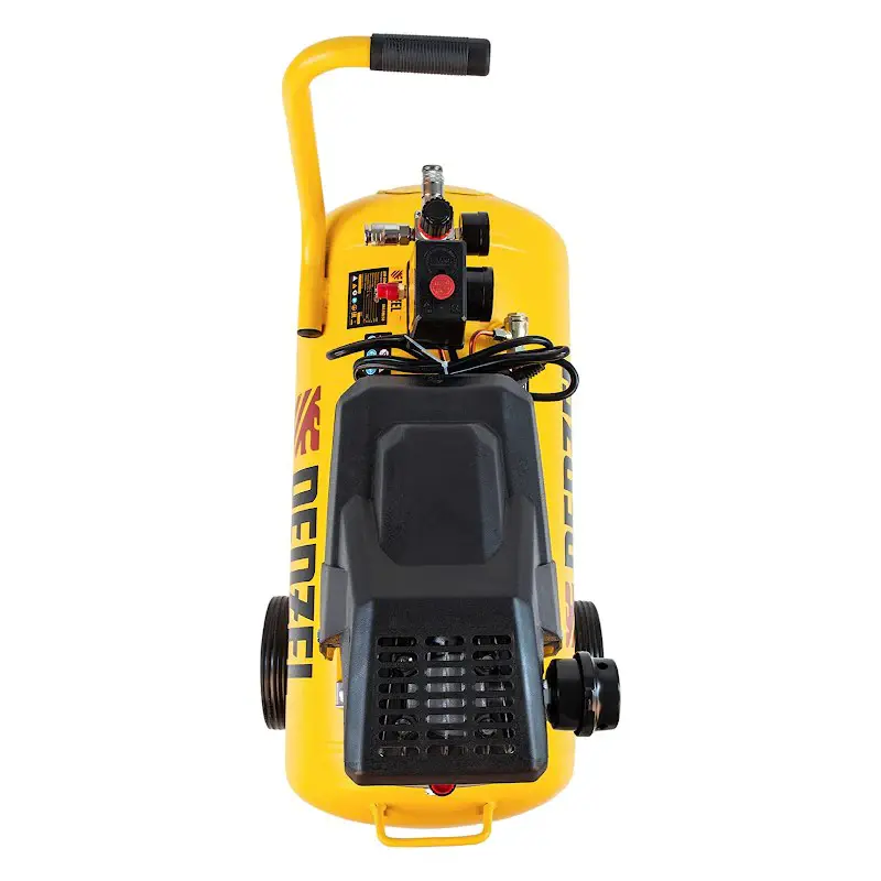 Транспортировочные колеса и ручка с нескользящей накладкой упрощают перемещение модели по рабочей площадке. Компрессор также оснащен двумя виброопорами для устойчивого положения.