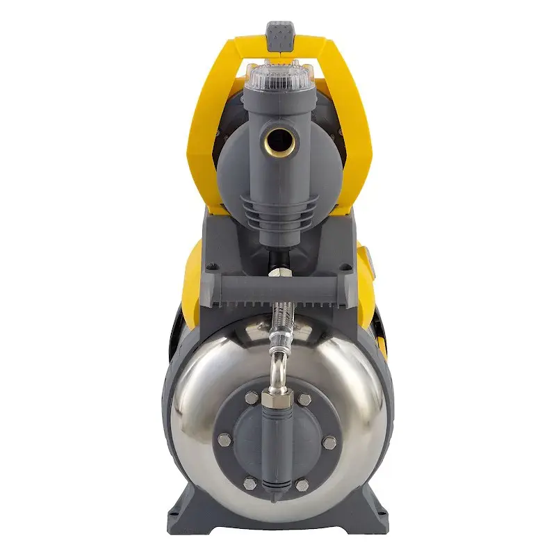 Реле давления обеспечивает работу насосной станции в автоматическом режиме. После заполнения напорного бака и достижения значения 3 атмосферы насос выключается, а затем снова включается при падении давления до 1,5 бар. Манометр позволяет визуально контролировать показания в системе. Благодаря резьбовому соединению диаметром 1 дюйм на входном и выходном разъемах можно подключать стандартные водопроводные трубы. Сливной клапан удобен для удаления воды из системы при прекращении работы и консервации станции. Сменная мембрана накопительного бака изготовлена из пищевой резины, поэтому оборудование можно использовать для подачи питьевой воды. Фильтр воды на входе имеет обслуживаемый картридж.
