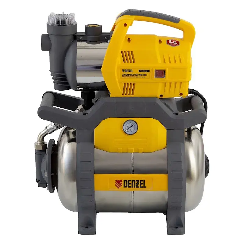 Насосная станция DENZEL PSХ950X служит для бытового водоснабжения частных домов, загородных дач и приусадебных хозяйств из источников глубиной до 8 м. Работает в автоматическом режиме от сети с напряжением 220 В. Оборудование готово к перекачиванию жидкости с производительностью до 3300 л/ч и максимальным давлением 3,8 бар.