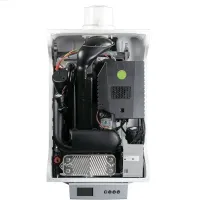 Панель управления имеет съемную конструкцию, что позволит устанавливать ее под котлом или вешать на стену. Для простой эксплуатации предусмотрен ЖК-дисплей. Рядом с ним расположены кнопки для ручной настройки температуры отопления, а также сброса и подтверждения заданных параметров. Компактный настенный котел занимает минимальное пространство.