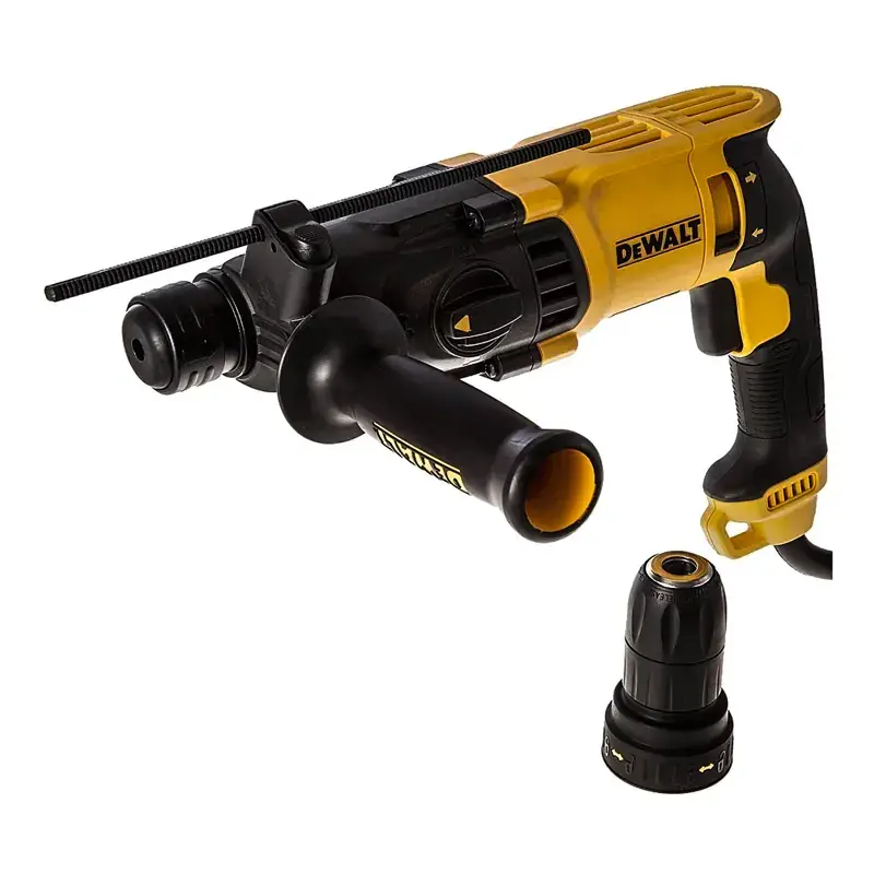 Перфоратор DeWalt D25134K мощностью 800 Вт предназначен для профессиональных работ по сверлению, долблению, сверлению с ударом и заворачиванию. Частоту вращения патрона можно регулировать до 1500 об/мин. Количество ударов достигает 5540 в минуту с максимальной энергией 3 Дж.