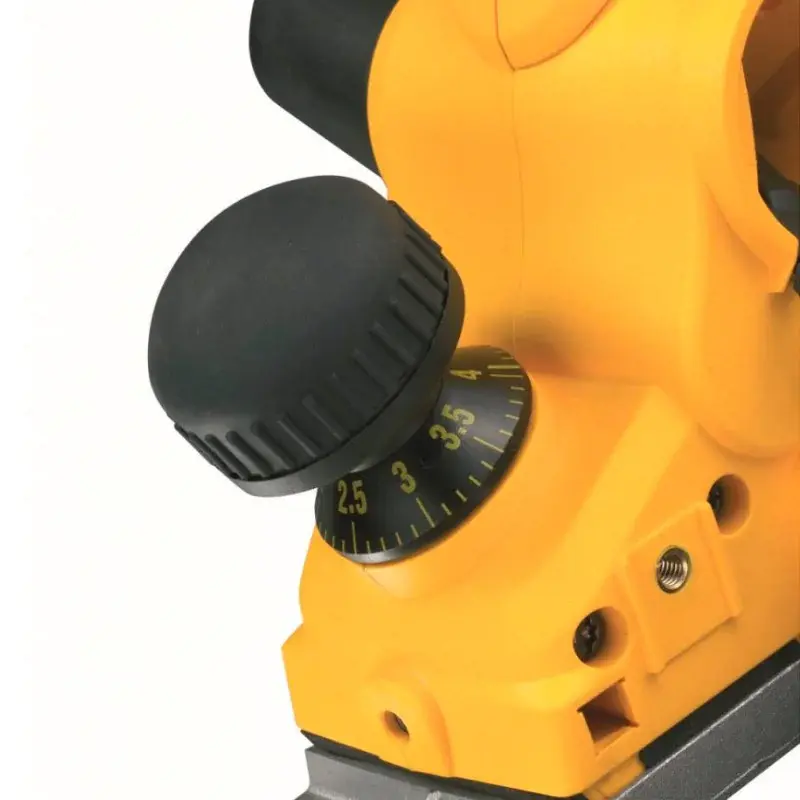 Электрорубанок DEWALT D26500K мощностью 1050 Вт за один подход обрабатывает полосу шириной 82 мм. Глубина строгания регулируется вручную от 0 до 4 мм.