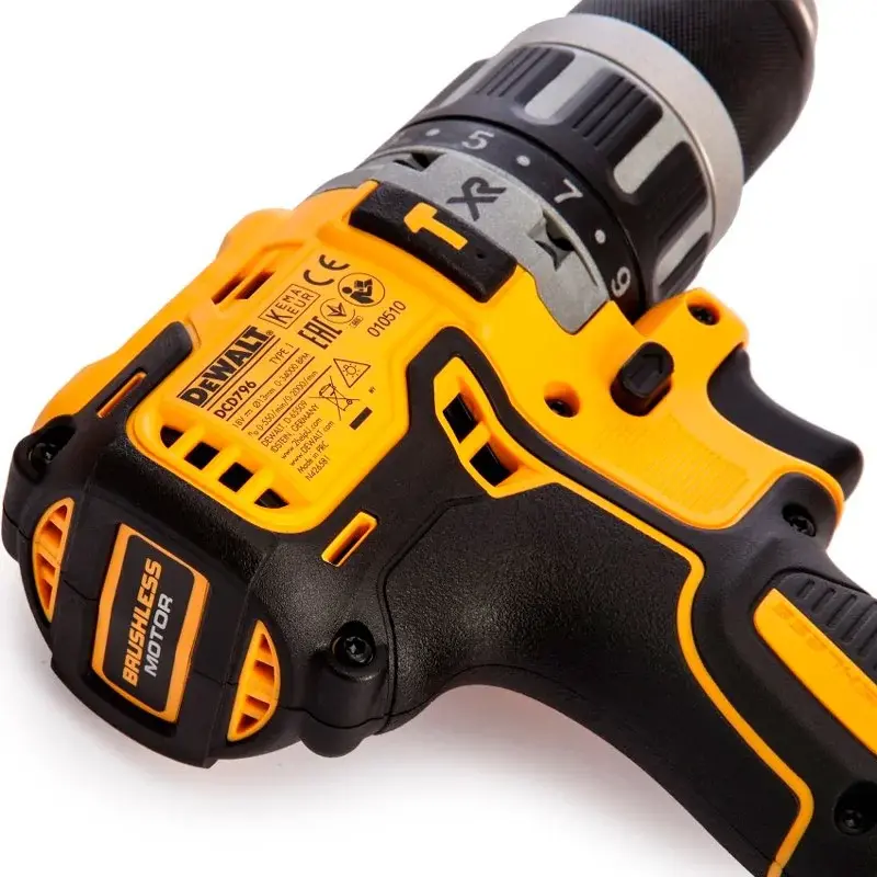Бесщеточная ударная дрель-шуруповерт Dewalt DCD796D2 снабжена быстрозажимным патроном, благодаря чему смена оснастки не занимает много времени. Встроенная подсветка обеспечивает комфортную работу в условиях плохой видимости. Ударная функция позволяет работать с каменной кладкой. Для точной работы с различными материалами, данная модель имеет две скорости и электронную регулировку оборотов.