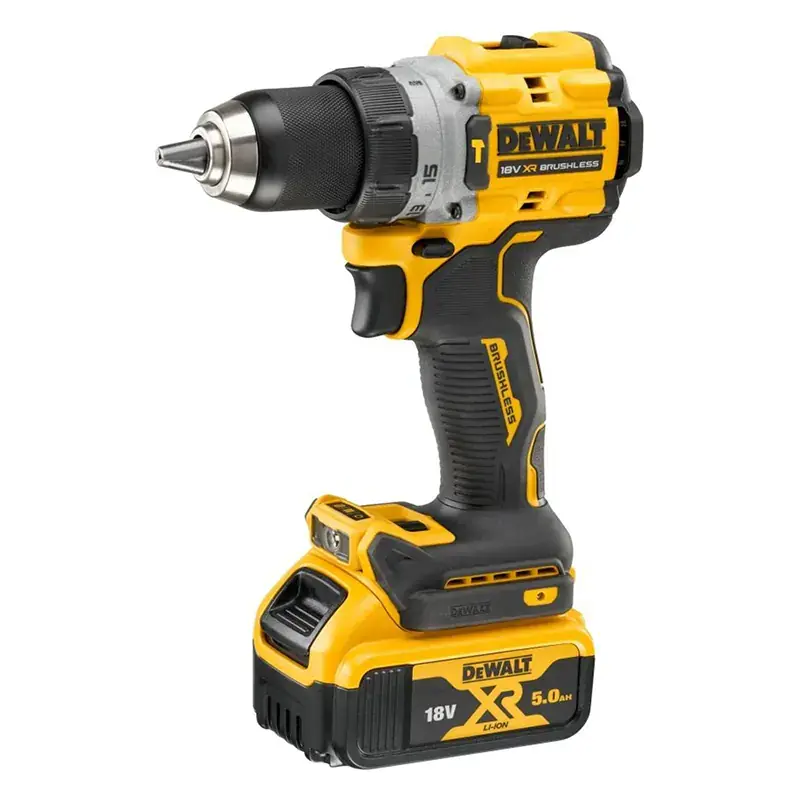 Если вам нужно подсветить зону сверления или крепеж, то на этот случай в дрели DeWalt DCD805P2T предусмотрен светодиодный фонарик. Подсветка включается нажатием на курковый выключатель. Её яркость настраивается переключением режимов.