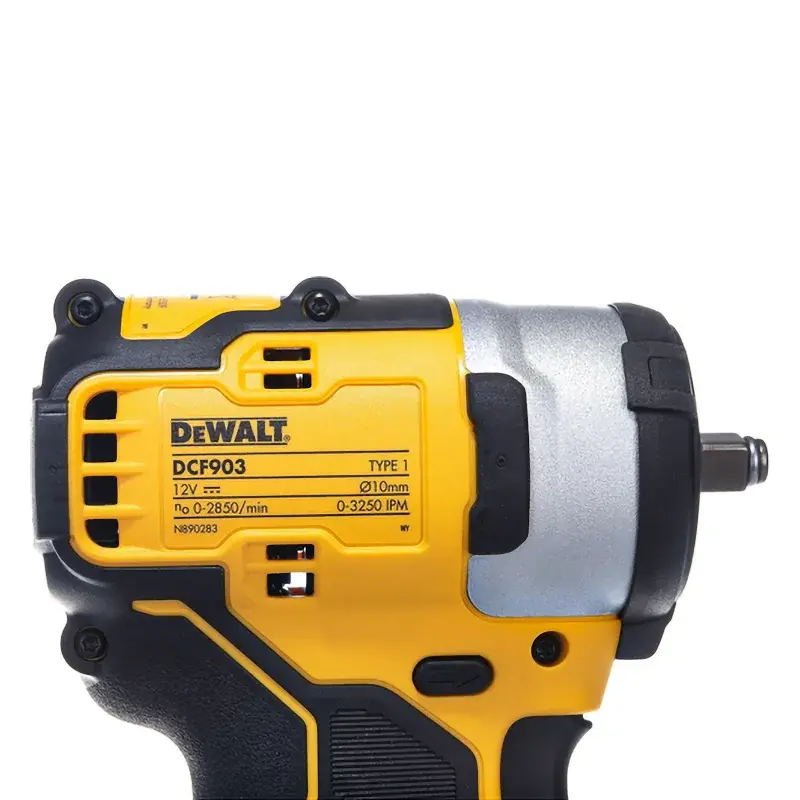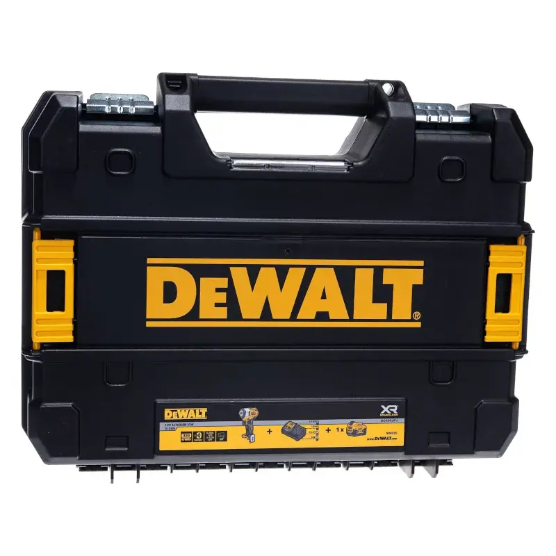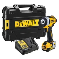 Прорезиненные вставки на корпусе и защитное кольцо на редукторе защищают инструмент от повреждений в случае падения. Вентиляционные отверстия на корпусе способствуют эффективному охлаждению. Бесщеточный двигатель отличается надежностью и долговечностью. Для удобства переноски и хранения гайковерт DeWALT DCF903P1-QW поставляется в пластиковом кейсе вместе с зарядным устройством и аккумуляторной батареей.