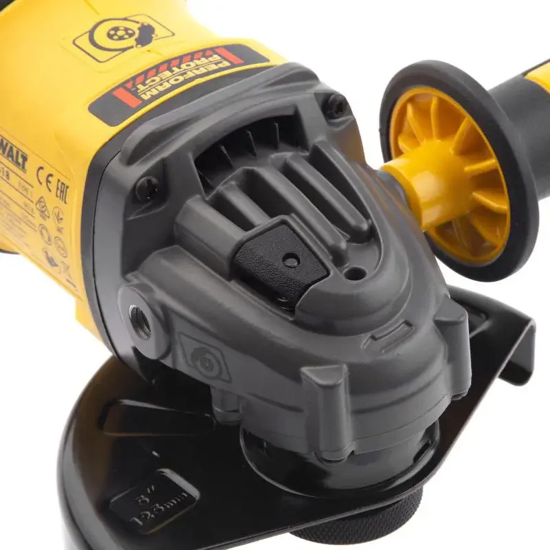 В болгарке DeWALT DCG418N-XJ предусмотрена электронная муфта. Она автоматически снижает максимальный момент, который передается вам при заклинивании диска. Функция также предотвращает внезапную остановку электромотора.