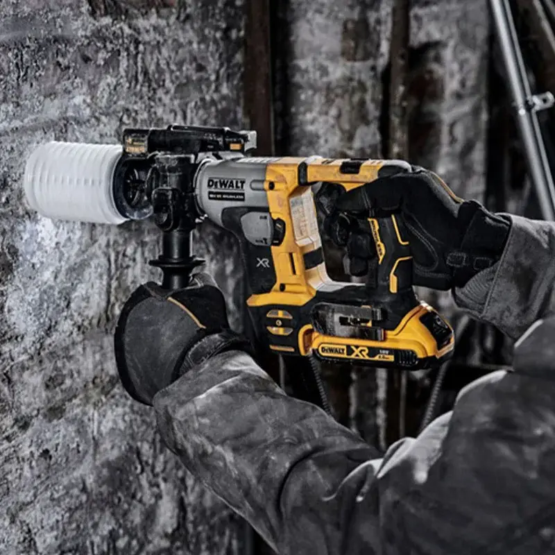 Патрон SDS-plus существенно ускоряет и упрощает смену оснастки. Кнопка реверса переключает направление вращения патрона для извлечения заклинившей оснастки или выкручивания крепежа. С ограничителем глубины вы легко просверлите отверстия заданной величины. Задняя основная рукоятка крепится к корпусу через демпферную систему активного контроля вибрации. Вы можете зафиксировать боковую антивибрационную ручку под наиболее удобным углом. Обрезиненные поверхности позволяют надежно удерживать и контролировать аккумуляторный перфоратор DeWALT DCH172N-XJ во время работы.