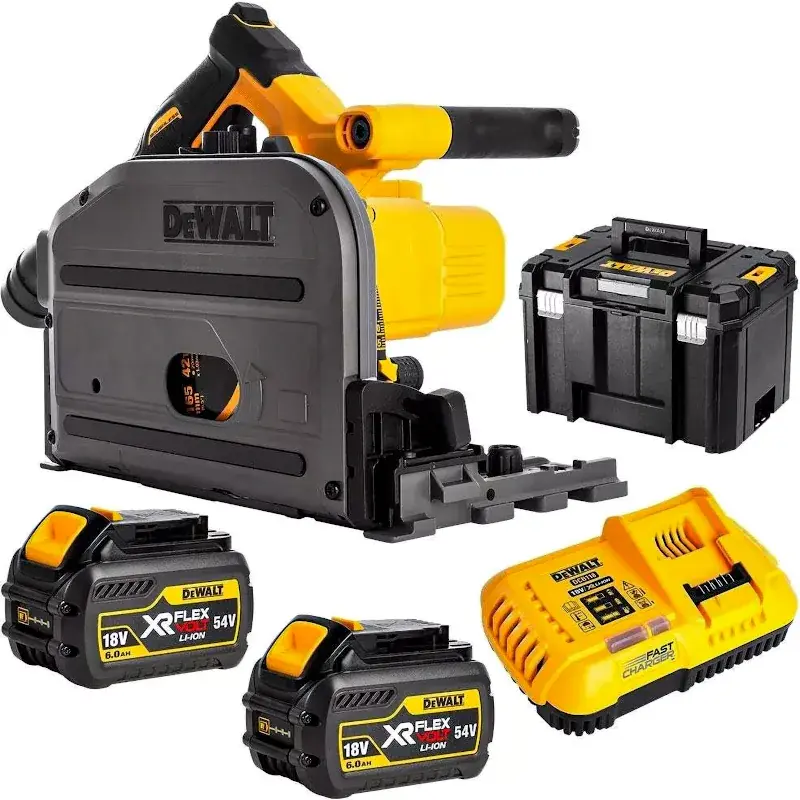 DCS520T2-XJ от профессионального бренда TM DeWALT – это погружная пила с аккумуляторным питанием и бесщеточным двигателем, которая подходит для разных видов распила. Вы можете настраивать скорость и угол пропила (от 0 до 57 градусов) в зависимости от материала и задачи. Механизм защиты от отдачи предотвращает скольжение погружной пилы назад по направляющей во время погружных пропилов. Электронная регулировка скорости позволяет подстроить ее под конкретный вид выполняемой работы и обрабатываемый материал.