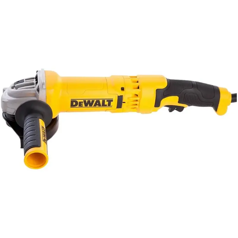 Тормоз двигателя останавливает вращение оснастки за две секунды, что позволяет избежать возможных травм и сократить время ожидания полной остановки. Благодаря возможности блокировки шпинделя смена оснастки значительно упрощается. Функция плавного пуска обеспечивает постепенный запуск без рывков. Инструмент с нескользящим корпусом удобно держать в руках. Сетевая болгарка DeWalt имеет защиту от случайного включения. После кратковременного отключения напряжения инструмент не запустится автоматически. Для возобновления работы необходимо еще раз нажать курок выключателя.
