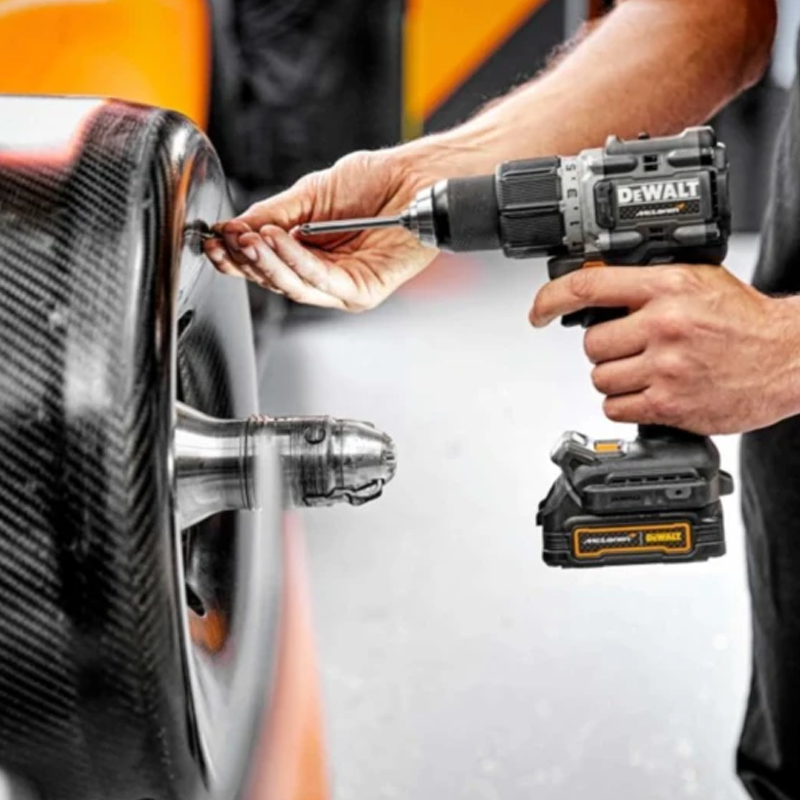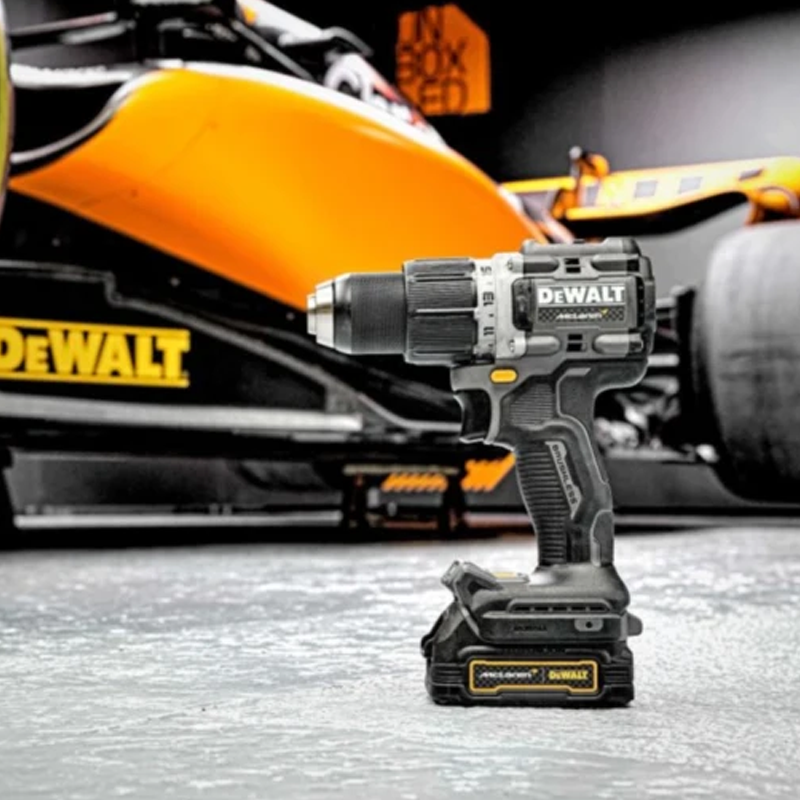 Всемирно известный бренд DeWALT стал официальным партнером по поставке инструментов для команды McLaren Formula 1. В знак дружеских отношений компания DeWALT недавно выпустила лимитированную серию инструментов, в том числе дрель-шуруповерт DCD85ME. Инструмент оформлен в стилистике McLaren под карбон, выглядит эффектно. В комплект входят два аккумулятора DCBP034ME PowerStack McLaren Edition 18V 1.7 Ач и зарядное устройство Compact. Набор поставляется в кейсе TSTAK черного цвета.