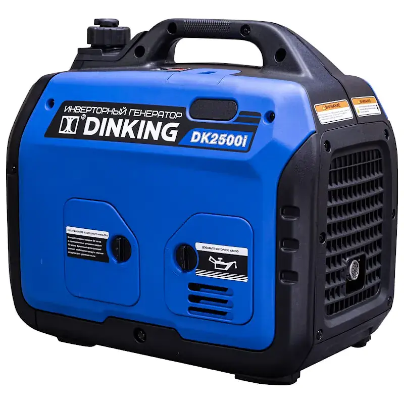 На передней панели генератора Dinking DK2500i расположены индикаторы работы, перегрузки и низкого уровня масла. При низком уровне масла двигатель автоматически выключится до заправки картера. Для безопасности в случае перегрева, превышения тока или неисправности подключенного прибора срабатывает предохранитель, выработка электроэнергии прекращается.