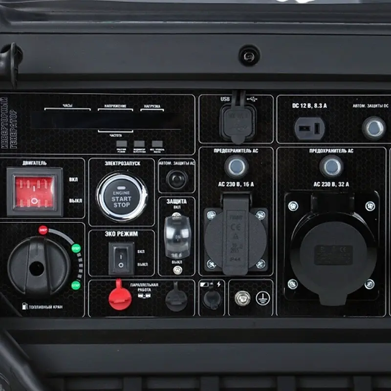 Данный генератор оснащен цифровым дисплеем который выводит важную информацию о работе генератора (напряжения, частота, моточасы). Благодаря "чистой" выдаваемой мощности на выходе ими легко можно запитать зарядные устройства чувствительной к напряжению техники (смартфоны, планшеты, ноутбуки). Генераторы способны поддерживать работу обогревательных и холодильных устройств, телевизоров, освещения.