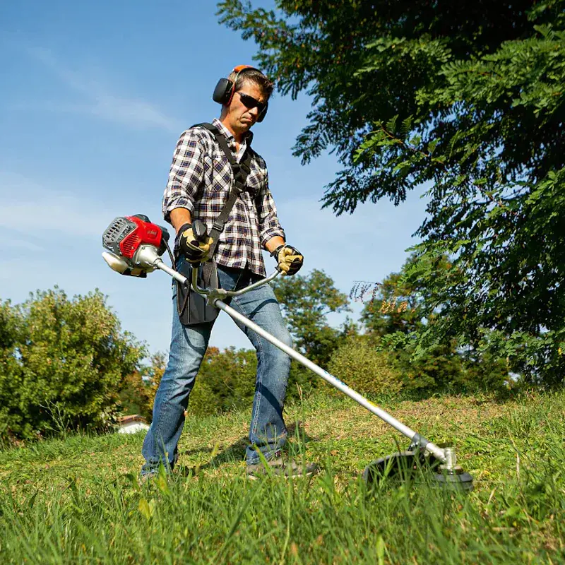 Бензиновый триммер оснащен двухтактным двигателем мощностью 2 л.с. и объемом 40,2 см3. Благодаря этому мотокоса легко скашивает не только мягкую газонную траву, но и жесткие сорняки, и поросль кустарников. Облегчить запуск мотора помогает система EasyStart с двумя пружинами, уменьшающими отдачу при старте.