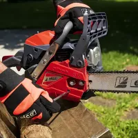 Бензопила работает на базе двухтактного одноцилиндрового двигателя экологического стандарта EURO 5 с системой контроля выбросов. Мотор объемом 42,9 см3 поддерживает до 12900 об/мин на холостом ходу, разгоняет цепь до 24,85 м/с, позволяет делать пропилы глубиной до 39 см. Поршень с двумя компрессионными кольцами и никелированный цилиндр повышают эффективность двигателя. Стальной кованый коленвал отличается прочностью и долговечностью. В конструкции использованы игольчатые роликоподшипники с минимальным коэффициентом трения.
