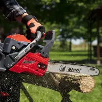 Бензопила с системой контроля выбросов соответствует экологическому стандарту EURO 5. Двухтактный одноцилиндровый двигатель объемом 42,9 см3 поддерживает до 12900 об/мин на холостом ходу. Цепь вращается со скоростью до 24,85 м/с, позволяет делать пропилы глубиной до 44 см. Поршень с двумя компрессионными кольцами и никелированный цилиндр повышают эффективность двигателя. Стальной кованый коленвал отличается прочностью и долговечностью. Игольчатые роликоподшипники имеют минимальный коэффициент трения.
