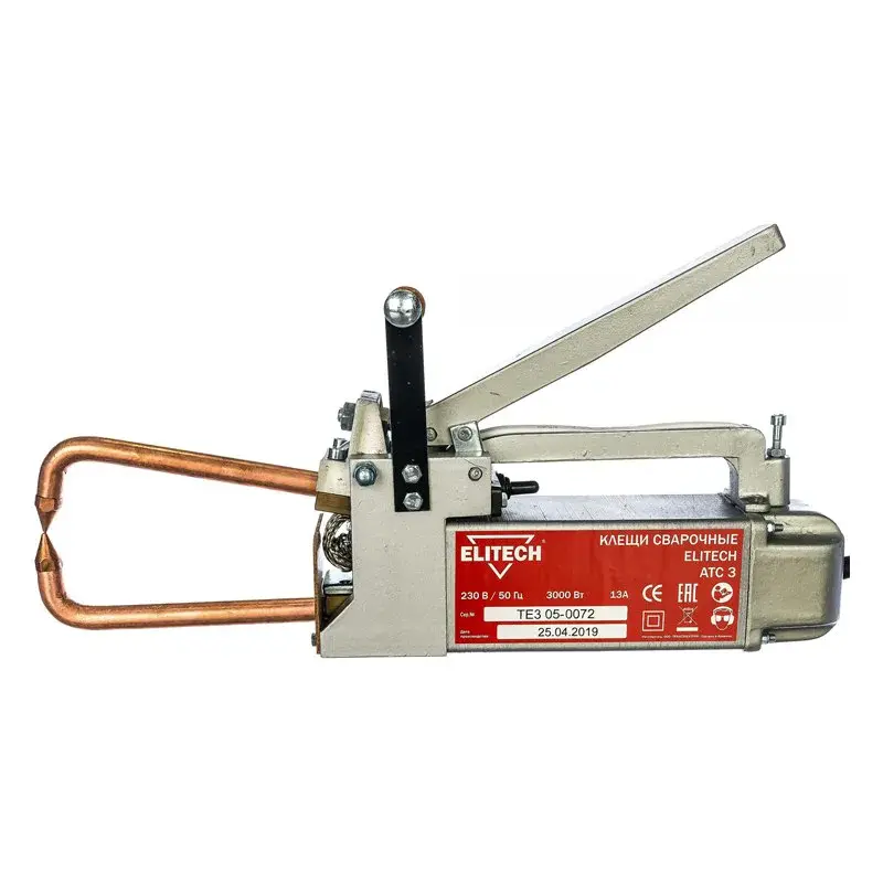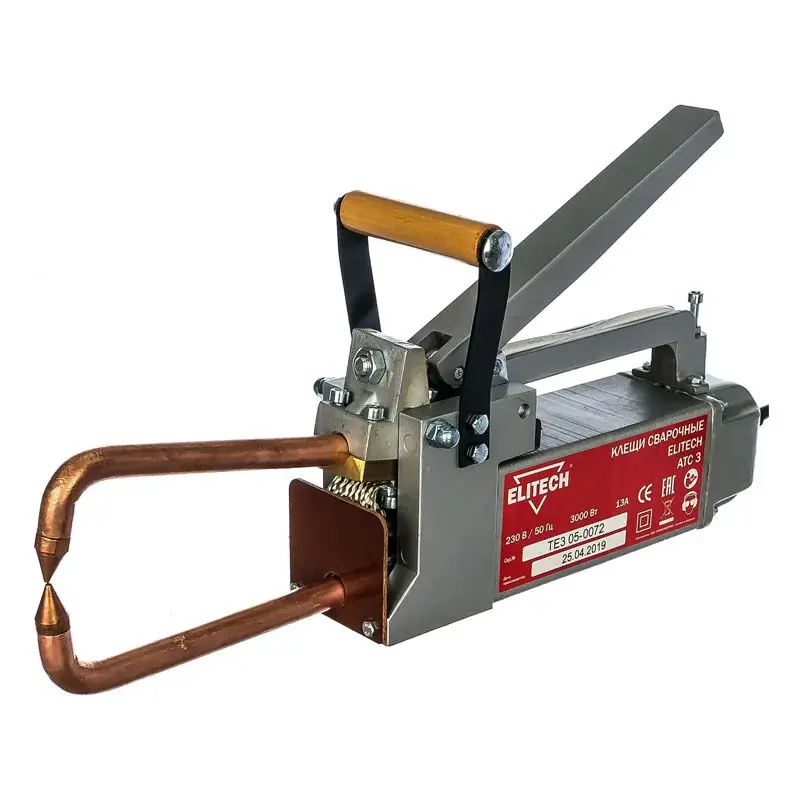Сварочные клещи Elitech АТС 3 используются для точечной сварки листов из металла на максимальном сварочном токе 5500 А. Инструмент обладает небольшим весом и оснащен дополнительной съемной ручкой, что делает его мобильным и комфортным в применении.