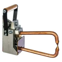 Клещи позволяют сваривать металлические листы одинаковой толщины – 1,5 мм. Вылет кронштейна составляет 152 мм. Этот показатель обозначает насколько далеко будет поставлена сварная точка от края.
