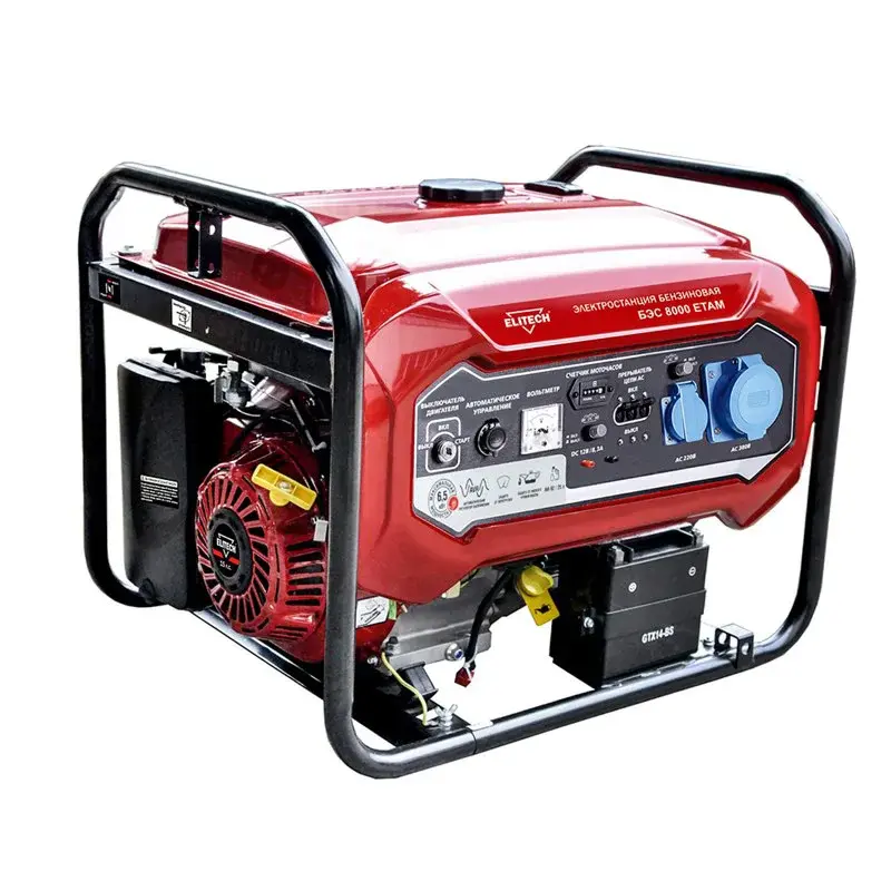 Бензиновый генератор ELITECH БЭС 8000 ЕТАМ можно использовать и в качестве резервного источника электроэнергии. Генератор функционирует с помощью мотора ELITECH 15HP. Расход топлива приемлемый и составляет 4.1 л/ч. Бензогенератор оснащен авторегулировкой выходного напряжения, есть различные датчики и защита от перегрева, перегрузок.