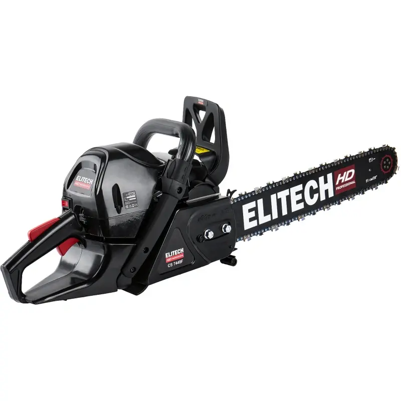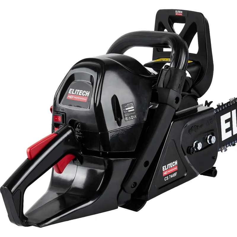 Цепная пила бензиновая ELITECH HD CS 7449F с двигателем мощностью 4,9 л.с. предназначена для пиления древесины вне помещений, на открытом воздухе.