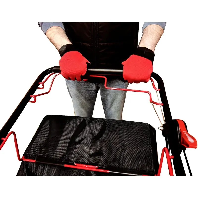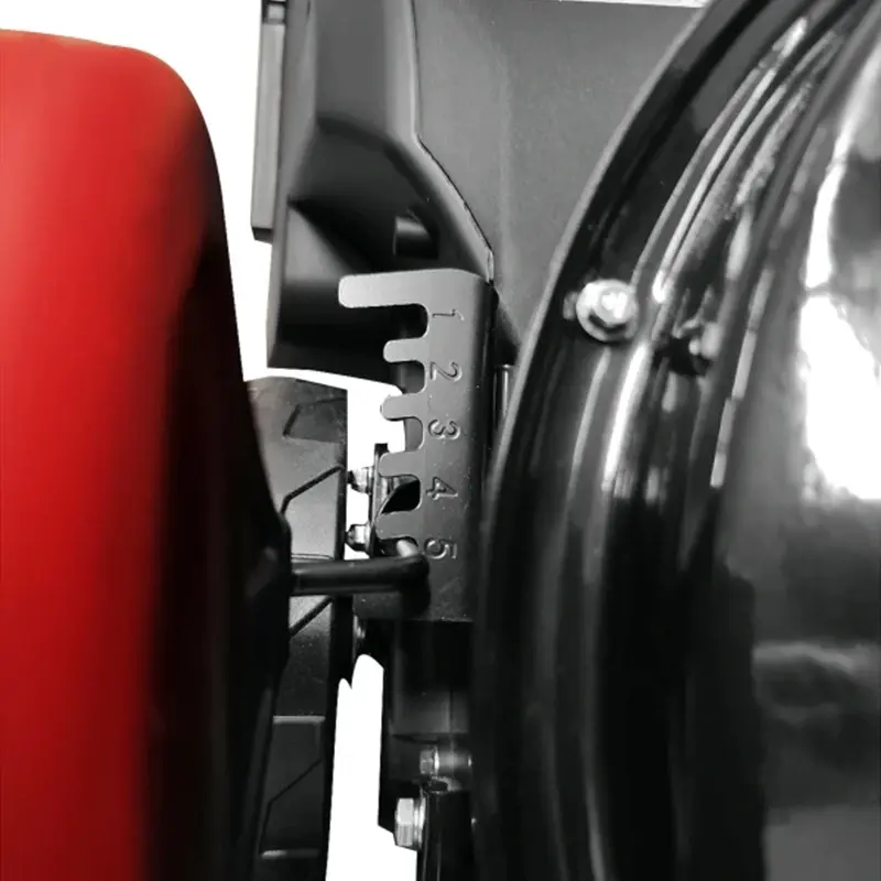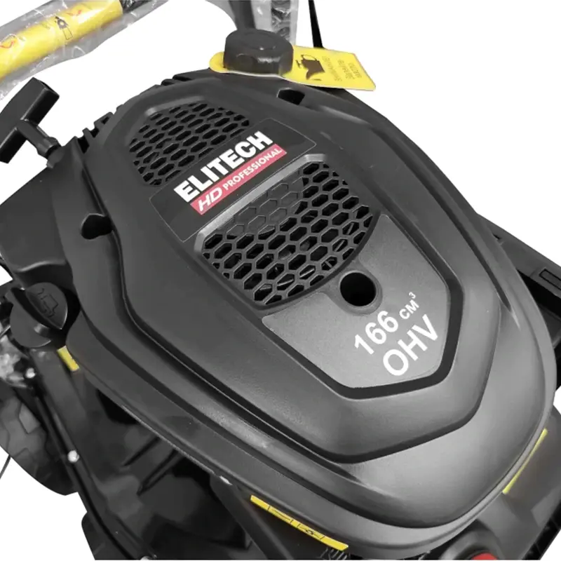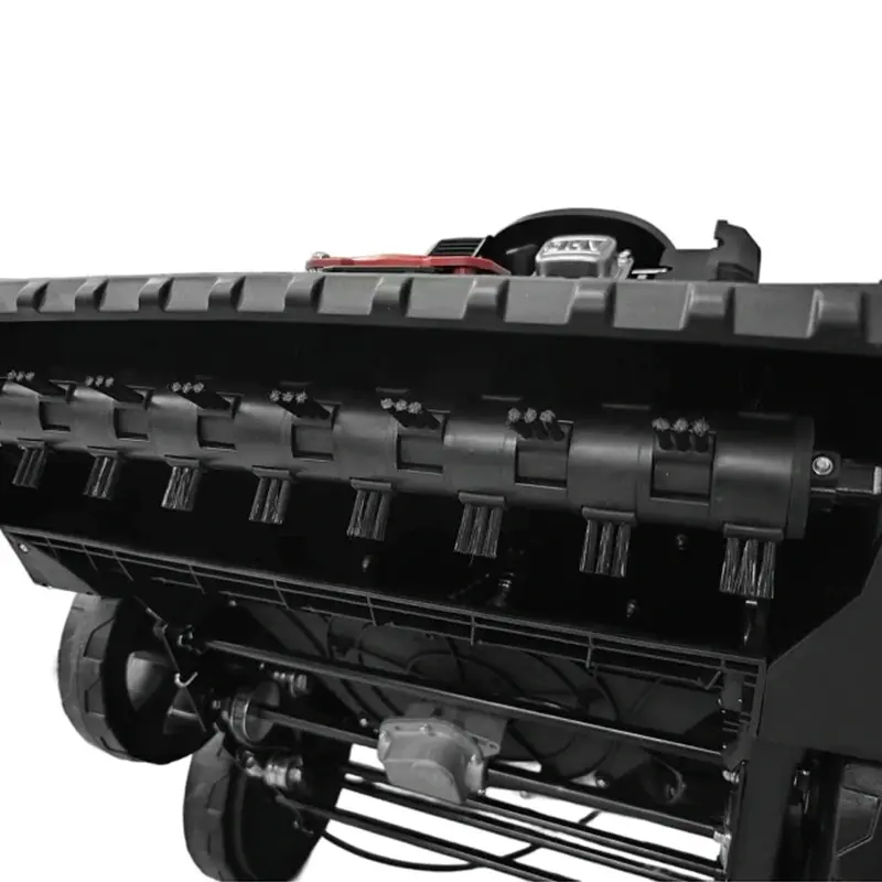 Модель оснащена 4-тактным бензиновым двигателем LONCIN с облегченным запуском и низким уровнем шума 105 дБ(А) . Крыльчатка агрегата создает воздушный поток, который через заборный дефлектор деки увлекает за собой остатки скошенной травы, опавшие листья и мелкий садовый мусор, направляя его в сборник объемом 150 л.