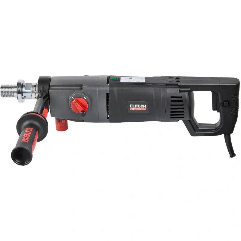 Дрель для алмазного сверления ELITECH HD HCD 1916E предназначена для получения отверстий в армированном и обычно бетоне, аналогичных по свойствам строительных материалах (кирпич, асфальт и прочее), горных породах, а также отбора керна. Дрель имеет патрубок для подключения пылесоса и реализует «сухой» способ сверления.
