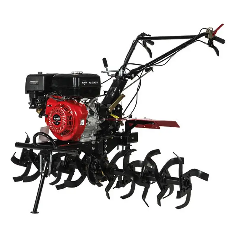 Мотоплуг ELITECH КБ 700/7 также поможет вам перевозить тяжелые грузы весом до 500 кг. Для этого понадобится установить прицеп-тележку, которая приобретается отдельно. Если вы хотите расширить возможности работы модели, то в качестве дополнительного навесного оборудования можно также докупить роторную косилку, окучник, плуг или картофелевыкапыватель. При работе с навесным оборудованием понадобится установить грунтозацепы, которые не входят в комплектацию.