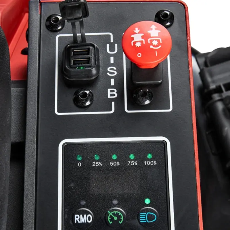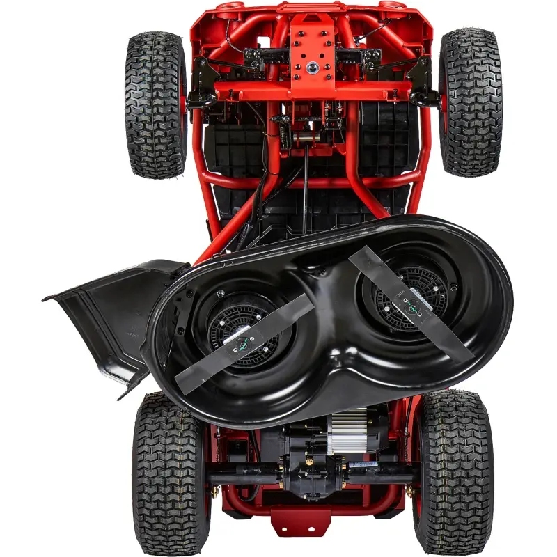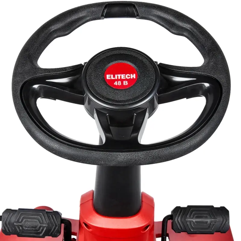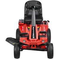 Аккумуляторная газонокосилка с сиденьем оснащена свинцово-кислотным аккумулятором напряжением 48 В и ёмкостью 50 Ач и предназначена для кошения травы на систематически обрабатываемой и предварительно подготовленной поверхности (газон, лужайка, поле для игр и т.п.) с уклоном не более 15 градусов, на участках до 4000 м2, в стандартной комплектации с выбросом скошенной травы вбок, либо кошением травы в режиме мульчирования, когда скошенная трава является удобрением для вновь растущей.