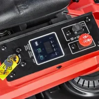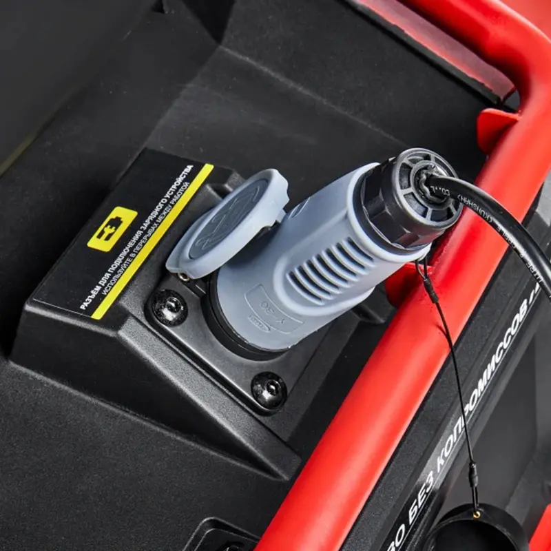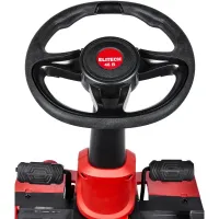 Аккумуляторная газонокосилка с сиденьем оснащена свинцово-кислотным аккумулятором напряжением 48 В и ёмкостью 50 Ач и предназначена для кошения травы на систематически обрабатываемой и предварительно подготовленной поверхности (газон, лужайка, поле для игр и т.п.) с уклоном не более 15 градусов, на участках до 4000 м2, в стандартной комплектации с выбросом скошенной травы вбок, либо кошением травы в режиме мульчирования, когда скошенная трава является удобрением для вновь растущей.