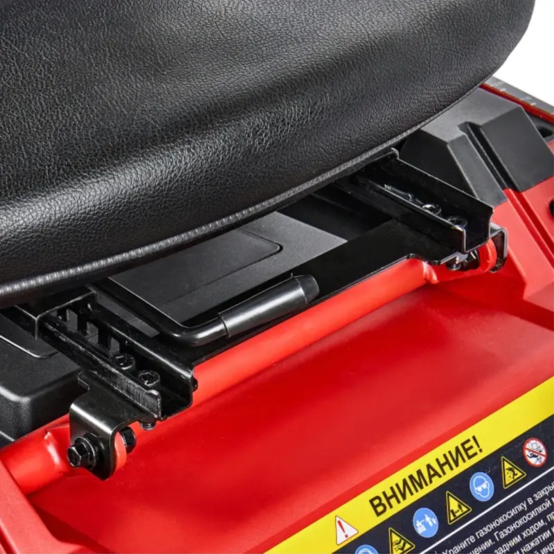 Аккумуляторная газонокосилка с сиденьем предназначена для кошения травы на систематически обрабатываемой и предварительно подготовленной поверхности (газон, лужайка, поле для игр и т.п.) с уклоном не более 15 градусов, на участках до 4000 м2, в стандартной комплектации с выбросом скошенной травы вбок, либо кошением травы в режиме мульчирования, когда скошенная трава является удобрением для вновь растущей.