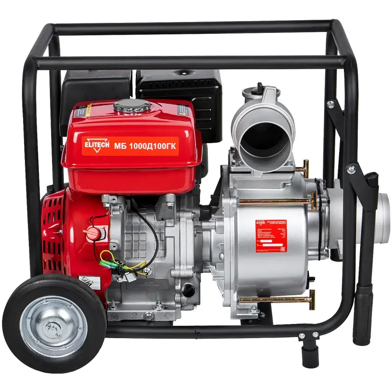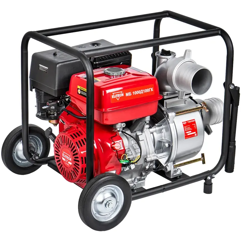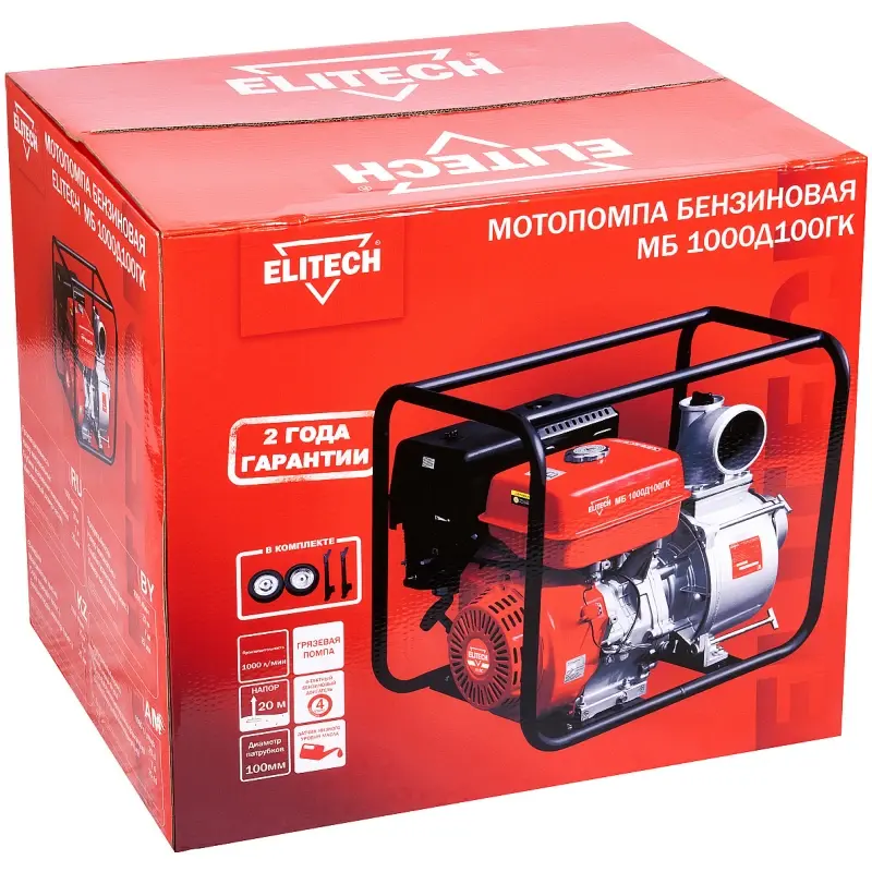 Мотопомпа МБ 1000 Д100 ГК с 4-х тактным бензиновым двигателем и ручным стартером производительностью 1080 л/мин. применяется для перекачивания загрязненной воды с диаметром частиц до 25 мм. Металлическое рабочее колесо. Максимальный напор до 20 метров и глубина всасывания 7 м.