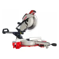 Торцовочная пила подходит для обработки древесных стройматериалов шириной до 305 мм. Мощный мотор раскручивает диск до 4800 об/мин на холостом ходу. Высокая скорость пиления обеспечивает ровный рез даже плотных пород древесины. Режущая головка наклоняется вправо до 45 °. Рабочий стол фиксируется рычагом в нескольких положениях в обе стороны: 0, 15, 22,5 а также 30 и 45 °.