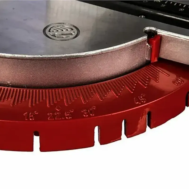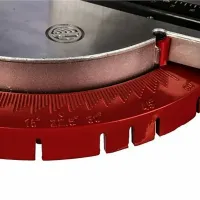 Проводная торцовочная пила снабжена параллельными направляющими и лазерным указателем. Луч, падающий на линию реза, способствует высокоточному распиливанию заготовки. Стол поворачивается в обе стороны на 45 °. Для максимально точной регулировки его положения предусмотрена разметка угла.