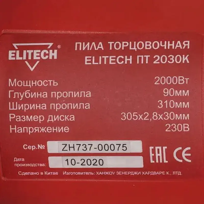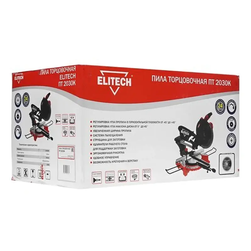 Торцовочная пила ELITECH ПТ 20-30К предназначена для распиливания древесных заготовок шириной до 31 см. Инструмент совместим с дисками диаметром 305 мм, что обеспечивает максимальную глубину реза 90 мм.