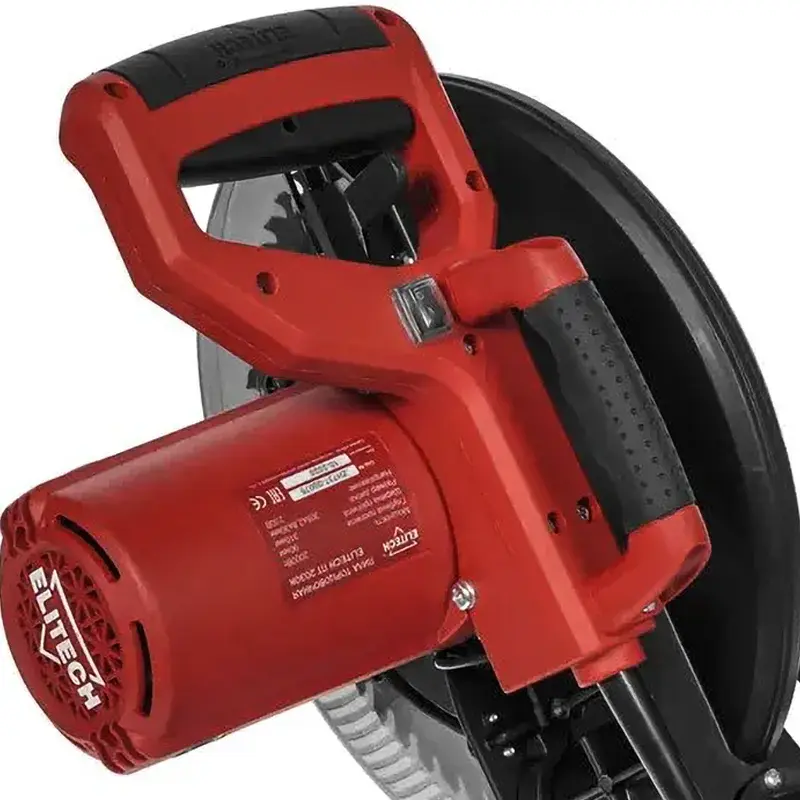 Торцовочную электропилу ELITECH ПТ 2030К можно подключать к бытовой электросети. Для этого предусмотрена функция плавного запуска двигателя, которая ограничивает пусковой ток до 16 А. Помимо этого, технология предотвращает рывки при включении инструмента.
