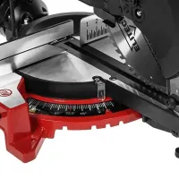 Стол поворачивается, а наклон режущей головки регулируется. Это позволит проводить пиление со скосом. Например, при изготовлении ящиков или картинных рам.